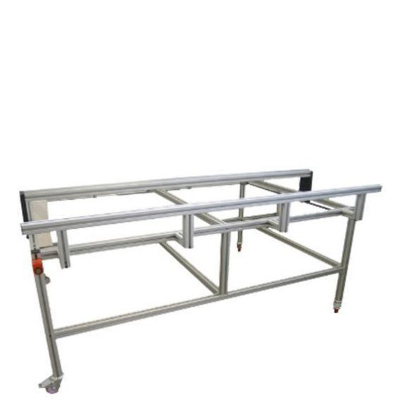 Banco di supporto su ruote per le unità di riscaldamento monofacciali per la piega di materiali termoplastici. Realizzato in proflo di alluminio modulare e montato su ruote, permette di spostare con facilità l'attrezzatura.