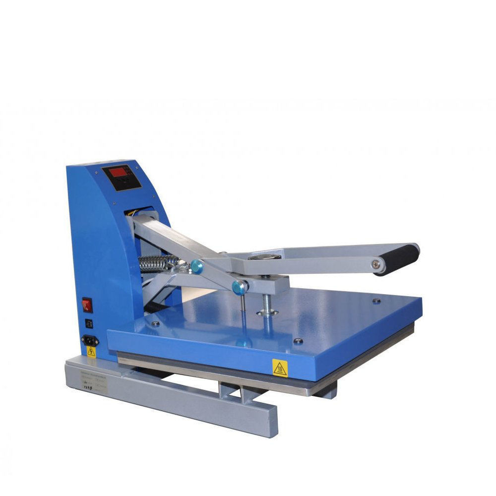 This is a manual heat press with digitally adjustable temperature and time. The pressure is adjusted by means of the black pressure adjustment screw in the middle of the heating plate. The Clam Basic is also perfect as a back-up machine.