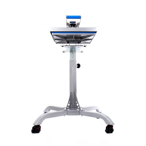 Maggiore flessibilità con Heat Press Caddie™. Personalizza la tua pressa a caldo: regolabile in altezza e facilmente spostabile grazie alle ruote integrate. Compatibile con presse MAXX™ e Auto Open Clam T-shirt (eccetto XS).